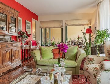 Varcata la soglia, si viene accolti da una zona giorno con parquet di ulivo meraviglioso. Le ampie vetrate inondano ogni angolo di luce naturale, creando un dialogo