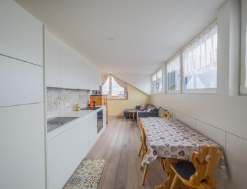 L'appartamento si trova al terzo e ultimo piano di un edificio molto ben tenuto con solo cinque unità. Potrete quindi godere dei vantaggi di un piccolo appartamento condiviso, che vi offre l'atmosfera di una casa individuale senza gli inconvenienti e i costi di un condominio.