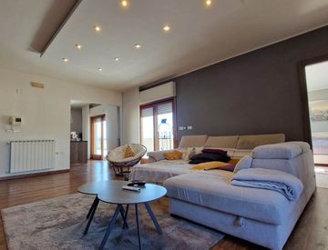 L'immobile è inserito in contesto residenziale di recente edificazione con struttura in cemento armato e si compone di: grande zona living con sala da pranzo e cucina abitabile, 4 camere da letto di cui 3 doppie e due bagni.