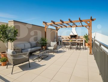 Grande Terrazza Esclusiva al Quarto Piano di ben 45 mq, perfetta come solarium o zona pranzo all'aperto.