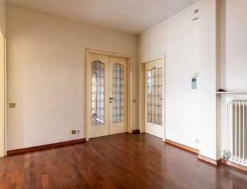 L'appartamento, disposto su un unico piano, si presenta con uno spazioso ingresso, una sala da pranzo, un salotto con camino, un ampio studio, una cucina abitabile, un disimpegno con piccolo disbrigo, tre camere da letto, doppi servizi ed un ripostiglio.