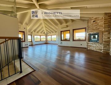 La luminosità è una delle caratteristiche principali: ampie finestre incorniciano la vista panoramica sulla città e sulle colline circostanti. Gli interni sono caratterizzati da travi a vista che conferiscono un tocco rustico ma raffinato. L'appartamento è disposto su due livelli: al quinto piano si trova la zona giorno spaziosa e accogliente, ideale per momenti conviviali con amici e familiari, il cucinotto è separato.