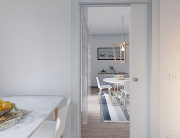 Ingresso su grande zona living con soggiorno/pranzo e cucina in open-space (eventualmente separabile), accesso diretto a due meravigliose terrazze abitabili con splendida vista; una delle terrazze è dotata di pratico ripostiglio. La zona notte si compone di camera matrimoniale con bagno padronale finestrato e con doccia, camera doppia, ampia camera singola e ulteriore bagno finestrato dotato di doccia. Al piano interrato comodo garage singolo.