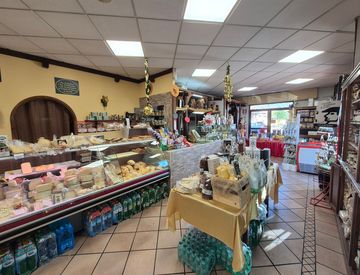 Il locale commerciale è di circa 80mq interni, composti da un ampia sala dove sono posti i prodotti per la vendita, un magazzino, un stanza per la preparazione dei prodotti ed un bagno; inoltre c'è la possibilità di mettere nell'area privata 4 posti auto per i clienti e nella corte di pertinenza tavoli e sedie per mangiare all'esterno.