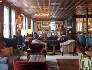 Entrando veniamo accolti da un’ampia sala con alti soffitti e dal design moderno,