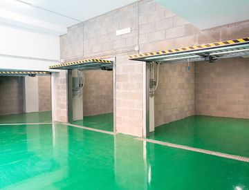 •Pavimentazione in resina nei box e betonella nelle aree comuni