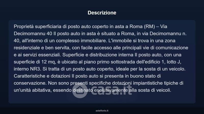 Box/posto auto in vendita Via Decimomannu 40, Roma