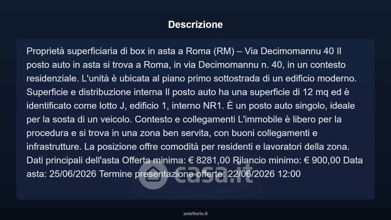 Box/posto auto in vendita Via Decimomannu 40, Roma