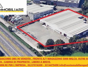 Proponiamo in esclusiva; vendita magazzino indipendente di 5000 mq. Ca. H 6 dotato di accessi a raso, area privata sviluppata a piazzale per 5000 mq. Ca. Fronte autostrada a/7 cabina di proprieta', ideale per attivita' espositive stoccaggio materiali ingombranti, logistica.
