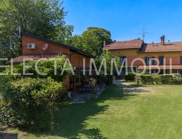 Il suggestivo portico conduce alla seconda unità immobiliare, costituita da una sala da pranzo, una cucina abitabile, un bagno e tre camere doppie da due delle quali si raggiunge il giardino privato circondato da piante d'alto fusto.