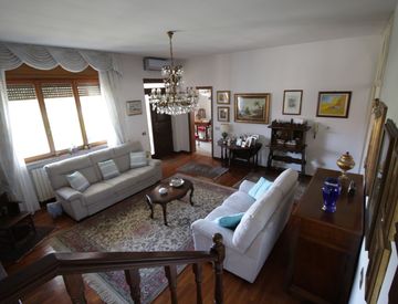 In zona residenziale porzione di villa bifamiliare indipendete su 3 lati composta da piano rialzato ampio appartamento con ampio salone con camino, cucina spaziosa, due camere matrimoniali, doppi servizi, ripostiglio. Piano sottotetto mansarda con bagno e terrazzo. Al piano terra troviamo ulteriore unita' abitativa con soggiorno, cucina camera, bagno. Box doppio 41 mq. Giardino su tre lati. Abitabile subito e molto ben tenuta. Riscaldamento autonomo...