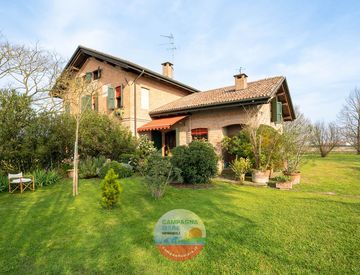 Casale bifamiliare in vendita a Copparo nella campagna circostante. L’abitazione (290 Mq ca commerciali) è libera su 3 lati con un giardino esclusivo di 1200 mq ca. La casa in vendita a Copparo è disposta su tre livelli ed è così composta: