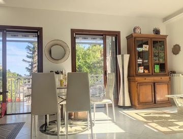 Al piano rialzato è presente un ampio salone molto luminoso, bagno di servizio, la cucina e due grandi balconi.
