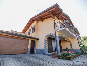In zona verde e riservata, porzione di bifamiliare con area di pertinenza esclusiva, disposta su due livelli e composta da ingresso, soggiorno con portico, cucina abitabile, bagno ed accesso diretto all'autorimessa doppia al piano terra; disimpegno, ampia camera matrimoniale con balcone, due camere con balcone e terrazzo e bagno al piano primo mansardato con travi a vista. L'immobile si trova in ottime condizioni con serramenti in legno con vetrocamera...