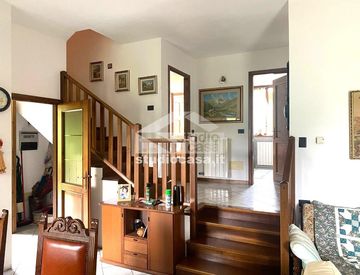 In zona tranquilla e panoramica proponiamo villetta bifamiliare posta su tre livelli, composta da box e ampio locale pluriuso al rustico (possibilità realizzo taverna, cantina, lavanderia) a piano seminterrato. Al piano rialzato alloggio composto da ingresso indipendente, angolo cottura, soggiorno con camino ventilato, disimpegno, due camere e bagno. Più scale per accesso al piano superiore dove troviamo due camere, bagno e balcone. Giardino privato...