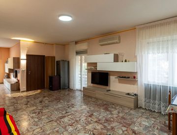 L'appartamento molto spazioso e ben strutturato, con diverse zone giorno e notte ben separate, il che è ottimo per una famiglia. Ha una buona distribuzione degli spazi: una cucina abitabile, un tinello per i pasti più informali, un soggiorno doppio con camino per momenti di relax, e una sala da pranzo per cene in compagnia. Inoltre, la presenza di due bagni e tre camere da letto rende l'immobile ancora più funzionale. I due balconi sono utili per...