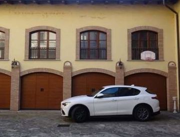 Al piano terra un box auto di 16,50 mq e alla quota di ¼ di porzione di area urbana di mq. 100