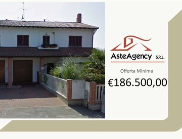 Descrizione sintetica: singola porzione indipendente della villa bifamiliare a schiera, formata da due piani fuori terra e relative parti comuni. Area di pertinenza costituita da un giardino recintato. E' composta da soggiorno, cucina, bagno, cantina, portico di mq 16,50 e box auto di mq 22,00 al piano terra, tre camere, di cui una con bagno, guardaroba, bagno e balcone di mq 4,00. Area esterna esclusiva di mq 168,00.