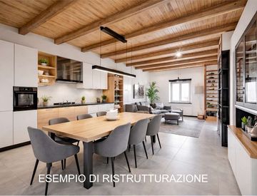 La zona giorno si sviluppa in un ampio e luminoso open space, dove cucina e soggiorno convivono in un'atmosfera accogliente e conviviale, perfetta per momenti di relax o serate in compagnia, servita da un bagno. Una scenografica scala in legno conduce al soppalco, dove si apre una zona notte dal carattere unico: due camere delimitate da eleganti pareti in legno, intime e suggestive, che esaltano l'anima storica dell'edificio.