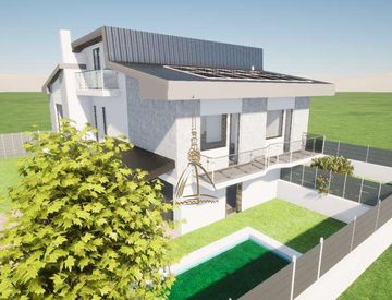 La porzione di villa sarà predisposta come segue: soggiorno con cucina, tre camere da letto, tre bagni posto auto e giardino su tre lati.
