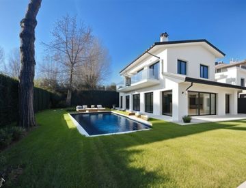 Villa bifamiliare di ampie metrature con giardino di circa 800 mq e posto auto, con possibilità di rialzare piscina di 18 mq. La villa è su 3 piani di cui uno sottoterra e internamente è composta: - piano terra: cucina, ampio soggiorno con zona pranzo e zona tv, camera singola, bagno di servizio e zona lavanderia; - piano mezzanino: Camera doppia con bagno: - piano primo: Due camere doppie con due bagni e terrazze; - piano mansardato: altra camera...