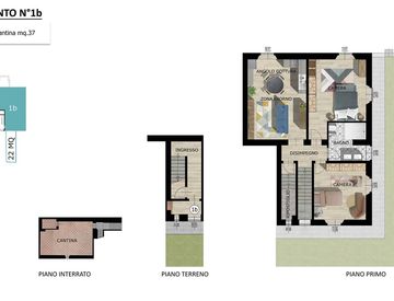 Villa - unità 1b - porzione di villa libera su tre lati composta da tre vani oltre accessori per una superficie complessiva di mq. 123 oltre al giardino privato di mq. 22, cantina di mq. 54, due posti auto