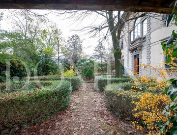 Dal parco privato, il cammino conduce naturalmente verso l'appartamento in villa, fino ad aprirsi su una ampia terrazza in cotto, affacciata sul verde e perfettamente integrata nella facciata.