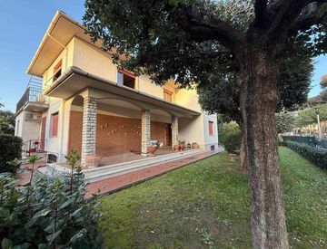 Si accede alla proprietà da cancello in ferro battuto tramite un vialetto che attraversa il bel giardino raggiungendo il raffinato porticato dove troviamo il portone di ingresso all' abitazione, un disimpegno con bellissima scala a vista si collega il piano abitativo