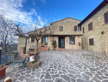 In zona collinare, panoramica e ricercata disponiamo di una porzione di casolare con due appartamenti indipendenti composti da piano terra: salone con camino e cucina a vista, ripostiglio e portico; piano primo: quattro camere, bagno; piano seminterrato: rustico con stufa a legna, cantine; altro appartamento composto da piano terra: ampio salone con cucina a vista e stufa a legna, due camere, bagno, portico con tettoia in legno. Terreno di 7200 mq...