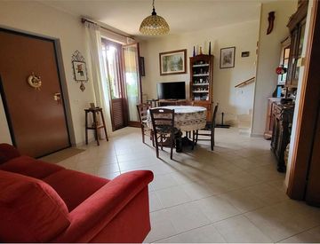 Disposta su due livelli la casa è composta da: soggiorno d'ingresso, cucinotto con uscita sul giardino e bagno di servizio. Piano primo, disimpegno, bagno con doccia e due camere da letto di cui una con balcone.