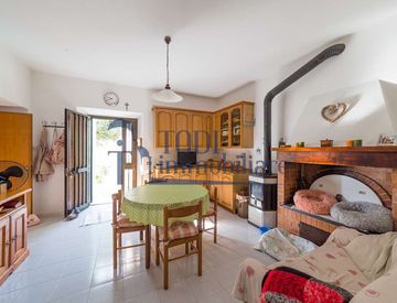 L'abitazione è composta da: Cucina abitabile, cucinino, soggiorno, bagno, magazzini, cantina, garage al piano terra; Disimpegno, bagno, due camere matrimoniali di cui una con il terrazzo, camera singola con terrazzo al piano primo.