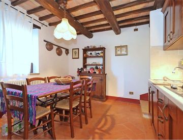 Nel comune di Todi, in contesto riservato immerso nel verde, proponiamo in vendita caratteristico cielo terra in pietra disposto su due livelli, della superficie commerciale complessiva di circa 110 mq. L'immobile, completamente ristrutturato nel rispetto dei materiali originali, è stato realizzato in tipico stile umbro con soffitti in legno con travi in legno a vista e pianelle in cotto, ed è composto al piano terra da soggiorno con camino, sala...
