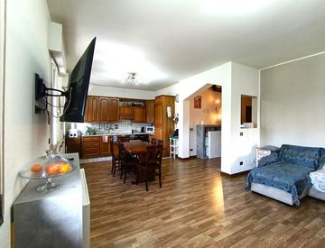 Qui troverete un accogliente corridoio d'ingresso che si apre su una luminosa zona living open space di circa 40 mq, ideale per momenti conviviali e relax.
