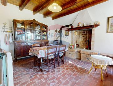 All’interno, conserva elementi originali di grande fascino come i travi in legno a vista, i pavimenti in legno naturale e le porte in vetro molato, che contribuiscono a creare ambienti caldi, accoglienti e pieni di carattere. Gli spazi risultano luminosi e ben distribuiti, ideali per una famiglia o come casa di campagna.