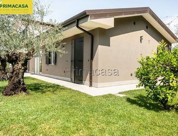 Colognola ai Colli - Moderna porzione di trifamiliare del 2023 in classe "A4" disposta su un unico livello con giardino privato di 150 mq circa, composta da ampio luminoso soggiorno con cucina a vista, camera matrimoniale, camera doppia e 2 bagni. Autorimessa e 2 posti auto scoperti di proprietà al piano terra. Impianto fotovoltaico da 5 kW, riscaldamento a pavimento in pompa di calore, serramenti in PVC bianco basso emissivi, zanzariere, impianto...