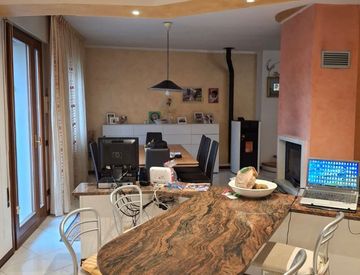 Appartamento completamente indipendente! L'unita' e' composta da spazi molto ampi, con ingresso al piano terra, taverna, bagno, lavanderia e accesso diretto al garage doppio. La scala porta al piano superiore dove si sviluppa tutto l'appartamento con salone grandissimo, caminetto a legna centrale alla stanza, TERRAZZA e poggiolo; TRE camere da letto e due bagni finestrati. Anni 80 con nessun lavoro da fare! All'esterno vanta un bel giardino condominiale....