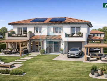 Il giardino privato esterno si estende su circa 130 mq, offrendo uno spazio verde dove poter giocare con i bambini o organizzare barbecue con amici. Inoltre, sono presenti due pergolati da 32 mq ciascuno e porticati totali da 21 mq che arricchiscono ulteriormente gli spazi esterni.