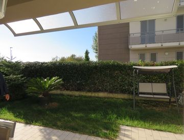 CENTRO COMM. LE LA ROTONDA: porzione terra cielo con ingresso indipendente, recente costruzione in classe A2, piano terra giardino, ingresso garage doppio lavanderia e bagno, piano primo zona giorno con soggiorno cucina e bagno, piano secondo zona notte con tre camere e bagno, mansarda con camera, bagno e terrazzo. Il tutto servito da ascensore interno. Ottimo stato dell'immobile. riscaldamento a pavimento, fotovoltaico. 675.000.