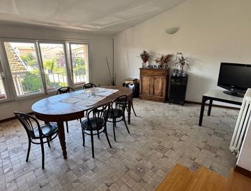 •Appartamento primo piano (ristrutturato nel 2000): ingresso, grande soggiorno con camino, cucina abitabile con balcone, disimpegno, 3 camere, 1 bagno, al piano superiore si accede ad ampia soffitta / vano multiuso con bagno, pronto da abitare.