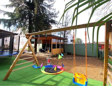 Si sviluppa su tre livelli per un totale di circa 150 mq. oltre al garage e giardino.