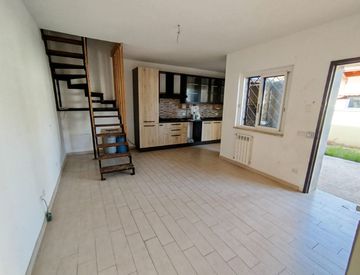 Ardea, Tor San Lorenzo, in vendita villino a schiera, su due livelli. L'immobile è composto al piano terra da un salone doppio (possibilità di ricavare un salone e una camera matrimoniale) con accesso al giardino, cucina a vista, una camera con affaccio sul secondo giardino e un servizio con finestra; il primo piano è formato da un grande camera con un ripostiglio e un servizio.