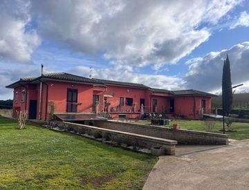 Capranica - Vico Matrino - immobile disposto su due livelli, di recente costruzione per un totale di circa 500 mq. Possibilità di adibirlo a struttura ricettiva o come abitazione per due o tre nuclei familiari. La proprietà si completa con un parco di circa 5.000 mq in cui si trova anche una piscina. Posizione comoda con accesso da strada sterrata in ottime condizioni. Riscaldamento a gpl e a pellet. Infissi nuovi, portoncini blindati, cancello elettrico....