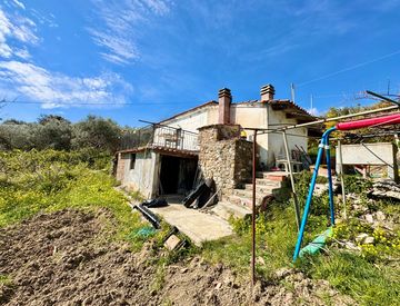 La proprietà vanta una notevole dotazione esterna: cortile con accesso carraio e porticato attrezzato, dotato di camino e forno a legna. Completa la soluzione un giardino piantumato di circa 1.200 mq e un terrazzo panoramico con vista aperta sulla costa.