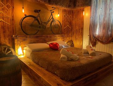Alture Rapallo- proponiamo Casa indipendente con 1.000mq di terreno possibilità di accesso con auto in piazzale. Area esterna attrezzata con forno a legna cisterna, lettini vista vallata; nel terreno a fasce sono presenti cabine balneari con sanitrit per dare la possibilità di bagno anche nell'area attrezzata esterna, fossa biologica. 3 camere principali a tema con bagno ciascuna, due interno, il bagno esterno ad uso esclusivo è una spa con vasca...
