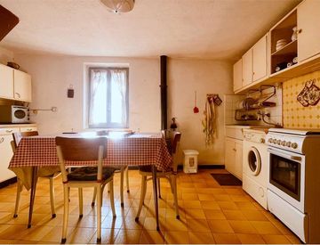 L'ingresso è sulla cucina abitabile, la quale è molto luminosa grazie alle finestre esposte a sud, il bagno della casa con box doccia è stato ricavato in quello che attualmente è il locale deposito, trasformabile in una spaziosa camera da letto con bagno privato.