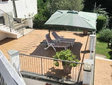 A soli 7 km dal mare proponiamo casa indipendente disposta su più livelli con ampia zona giorno con cucinino, tre camere da letto, quattro bagni, taverna, zona barbecue, ampie terrazze, giardino circostante e terreno. Box di proprietà e posti auto scoperti.