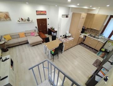 Al piano terra troviamo un ampio open-space con soggiorno e cucina e comodi ripostigli, mentre al piano superiore due camere ed un bagno spazioso.