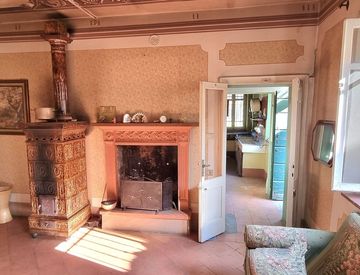 Mortara a breve distanza solo una decina di minuti d' auto, in Comune con servizi primari, caratteristica casa d' epoca composta da sala e cucina abitabile con due originali stufe in maiolica, camini e bagno al piano terra, al piano superiore due grandi camere letto ognuna con servizio, terrazzo vista giardino con fabbricati multiuso e ingresso carraio