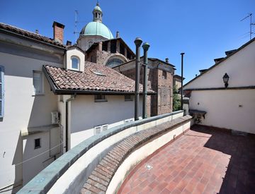 Completa questo piano uno splendido terrazzo, direttamente affacciato sui tetti e sulla cupola della Duomo.