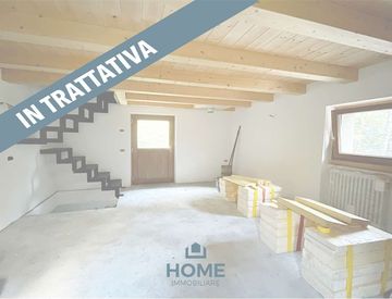 Al piano semi-interrato camera da letto, disimpegno e bagno. Piano terra soggiorno/cucina luminoso con accesso al grande terrazzo privato e soppalco con tetto a vista.